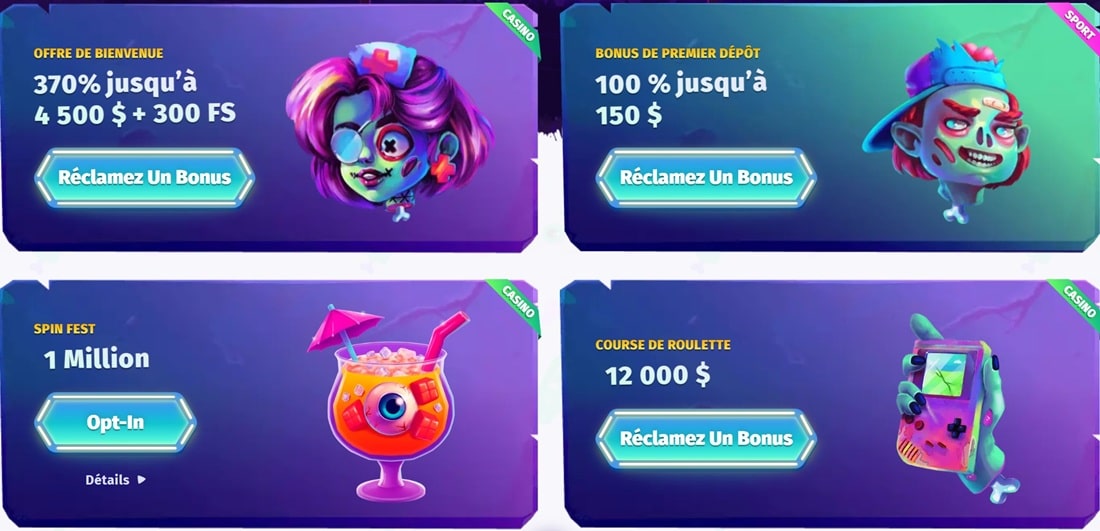 Casombie est un casino en ligne innovant qui se distingue par son thĂšme unique et captivant inspirĂ© dâun univers de zombies. Avec une interface visuellement attrayante et facile Ă naviguer, Casombie propose une expĂ©rience ludique et immersive. Ce casino met Ă disposition des joueurs une large sĂ©lection de jeux, des bonus attractifs, ainsi que des promotions adaptĂ©es Ă diffĂ©rents profils. Que vous soyez amateur de machines Ă sous, de jeux de table ou de live casino, Casombie a de quoi satisfaire vos attentes. DĂ©couvrez ci-dessous les principales informations concernant cette plateforme de jeu en ligne.